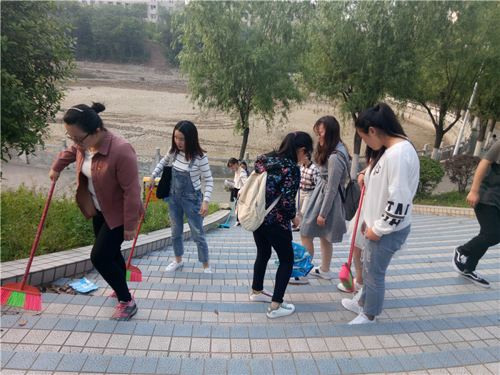 2018年4月28日下午,在组织员王付娟、学生党支部书记杨林、学生党支部宣传委员刘书含三位老师的带领下,我院学生党员来到我院示范班责任区,积极参加了这次美化校园的活动。