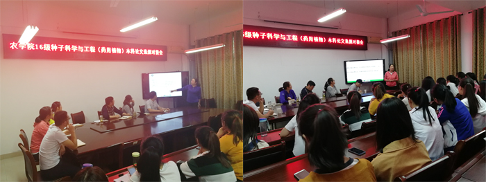 5月4日下午,我院药用植物教研室在2A316召开了2016级种子科学与工程(药用植物)本科毕业论文选题对接会。会议由张艳玲老师主持,尹健院长、张莉博士、药用植物教研室专业教师和16级种子科学与工程(药用植物)专业全体学生参加。