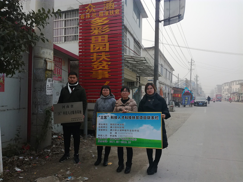 2017年12月30-31日,我院教师刘红敏、李淑梅和金明慧一行3人赴潢川开展三区技术服务工作和挂牌仪式。