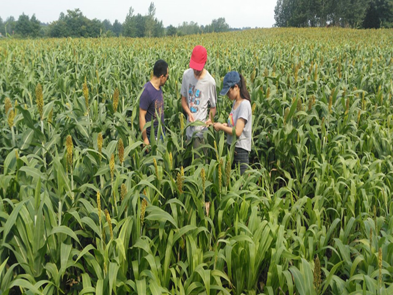 农学院教师一行随鸡公山酒业负责人到与其合作的信阳市平桥区兴业农业种植专业合作社,考察高粱种植情况。农学院教师首先询问了合作社选种的高粱品种以、种植模式和施肥情况,并就合作社非常关心的该季节高粱容易出现的病虫害问题进行了专业的指导。