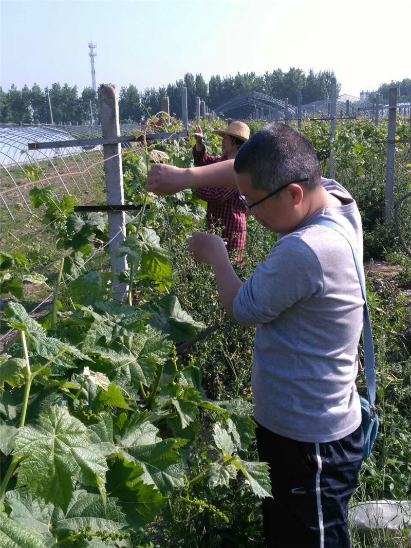 4月30日,beat365在线平台官网教师冀保毅到正阳县照保农业科技有限公司开展技术指导与交流活动。在照保农业科技有限公司工作人员的带领下到田间地头开展葡萄种植、修剪、除草,对避雨棚搭建和施肥等工作进行了现场指导,并对葡萄病虫害防治提出了合理建议。