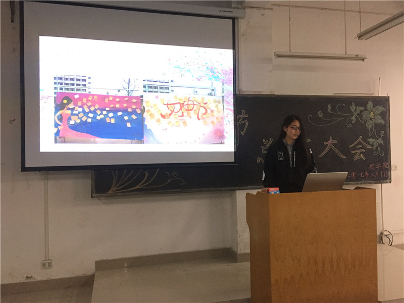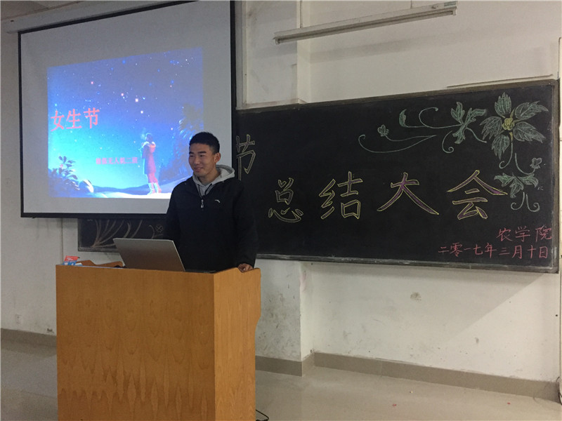 为总结我院女生部在第一届女生节活动中的经验与不足,以便在以后的活动中做的更好,我院举行了女生节总结活动。当晚7点,我院女生部在1教104举办了女生节总结大会,各班制作ppt总结本班女生节活动,向同学们展示并演讲。