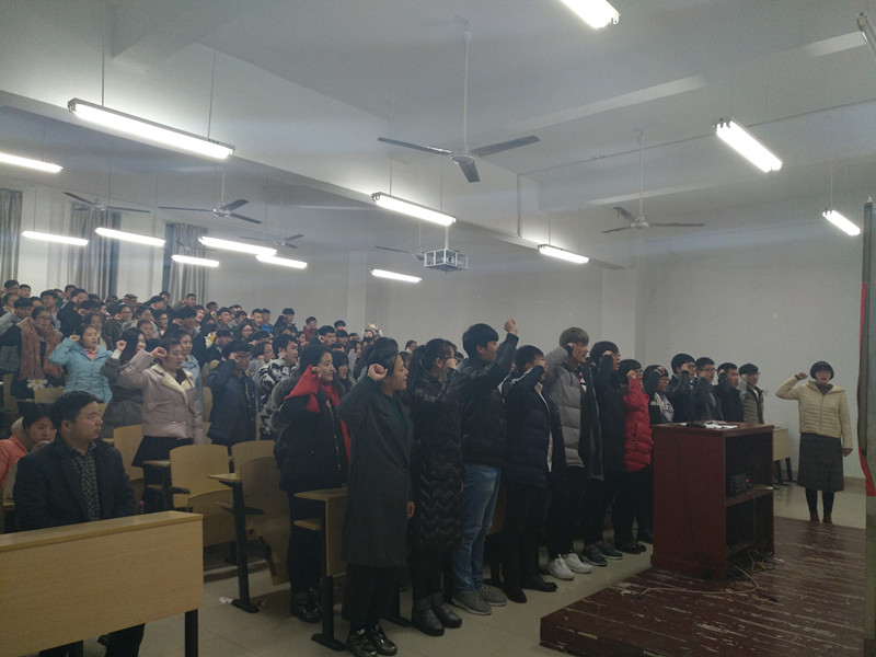12月20日下午,我院党总支在二教206举行新党员入党宣誓大会,全校160名新党员宣誓,外语学院党总支书记张志强、茶学院党总支书记袁丁、农学院党总支副书记雷振山和部分学院团总支书记、学工组成员等参加了此次会议。会议由我院党总支副书记雷振山主持。