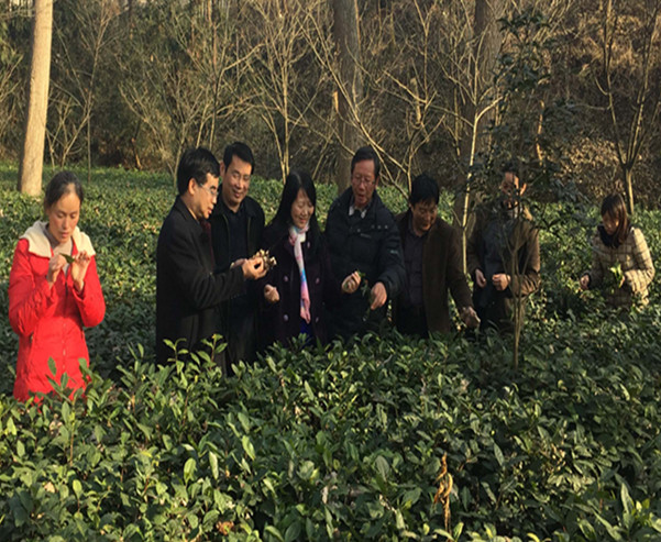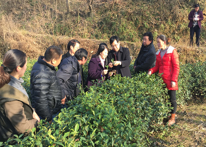 在罗山县清德茶林专业合作社,各位领导和专业教师就茶园的运营管理情况,从各自专业的角度发表了见解。史洪中教授详细讲授了茶树病虫害绿色防控的具体措施,对茶园冬季管理及病虫害防治提出了建设性的意见。