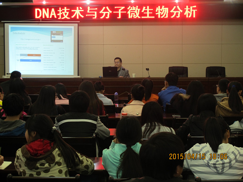 2015年4月15日下午,在行政楼一楼会议室,美籍华人李全义博士为农业科学系师生做了题为“DNA Technologies and Molecular Analysis of Microorganisms”的学术报告。