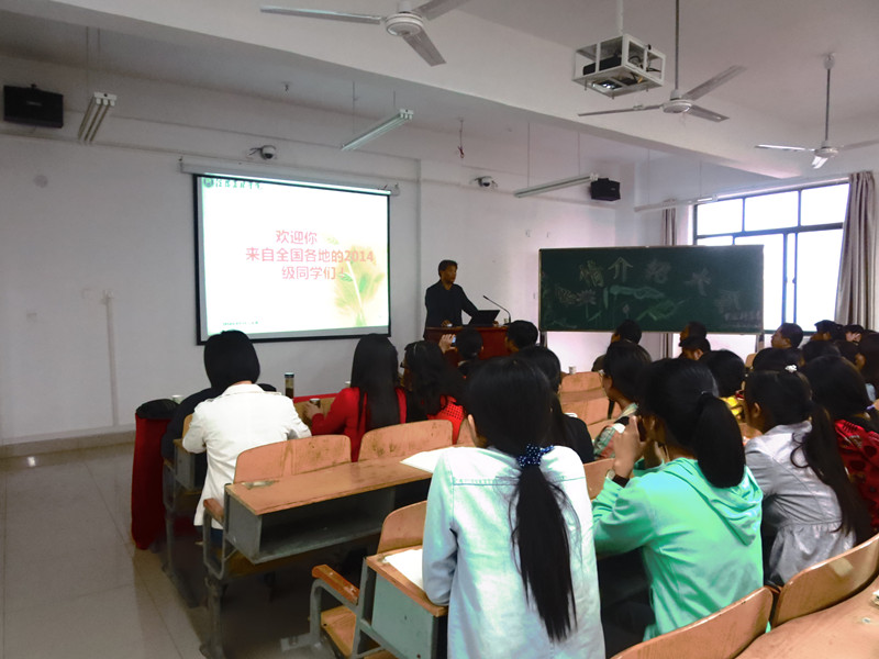 9月16日下午,我系组织2014级新生在2教313召开系情介绍大会。系主任胡孔峰、系党总支书记尹健、副主任李传保、各教研室主任、各班班主任和辅导员老师们参加了本次大会。