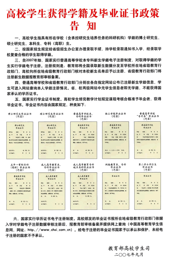 [转帖]高校学生获得学籍及毕业证书政策告知