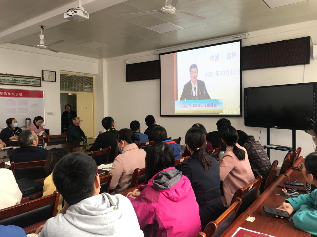 10月19日,全国新农科建设工作推进会在吉林长春举行,教育部、农业农村部、国家林草局、国家乡村振兴局相关司局和涉农高校负责人参加会议。我院利用周二下午例会时间组织全体教职工通过线上平台实况观看了本次会议的直播,并重点听取了教育部高等教育司吴岩司长的报告。