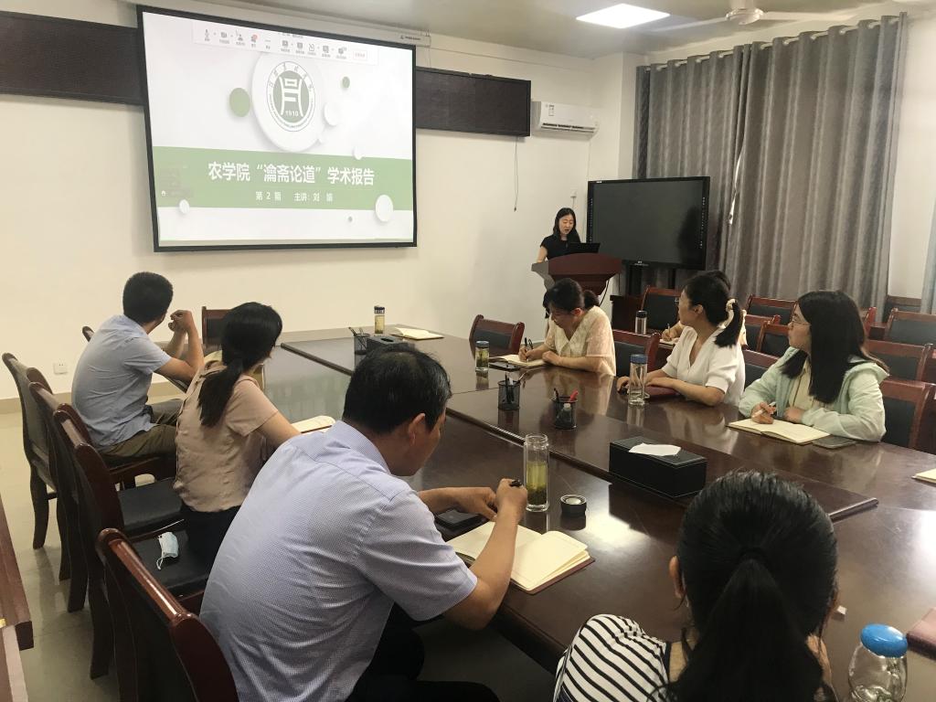 2022年6月21日上午,我院“瀹斋论道”第2期学术报告在实验楼2A316举行,种子科学与工程专业教师刘娟博士为我院师生做了题目为“褪黑素调控水稻幼苗盐胁迫应答机制研究”的学术报告。会议由农学院副院长董丽平主持,农学、种子科学与工程专业的师生共计160余人通过线上线下两种形式参加本次会议。