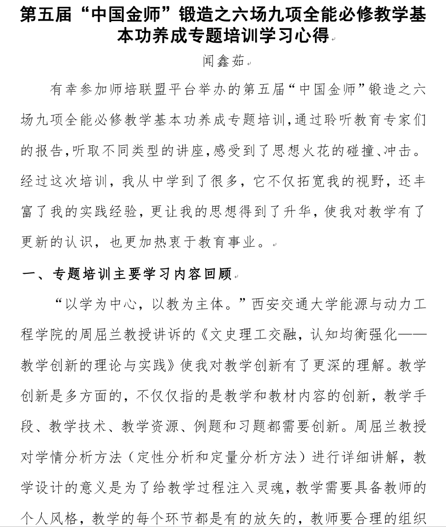 2022年8月27日至29日,我院全体专任教师参加了校教师发展中心组织的第五届“中国金师”锻造之六场九项全能必修教学基本功养成专题在线培训。