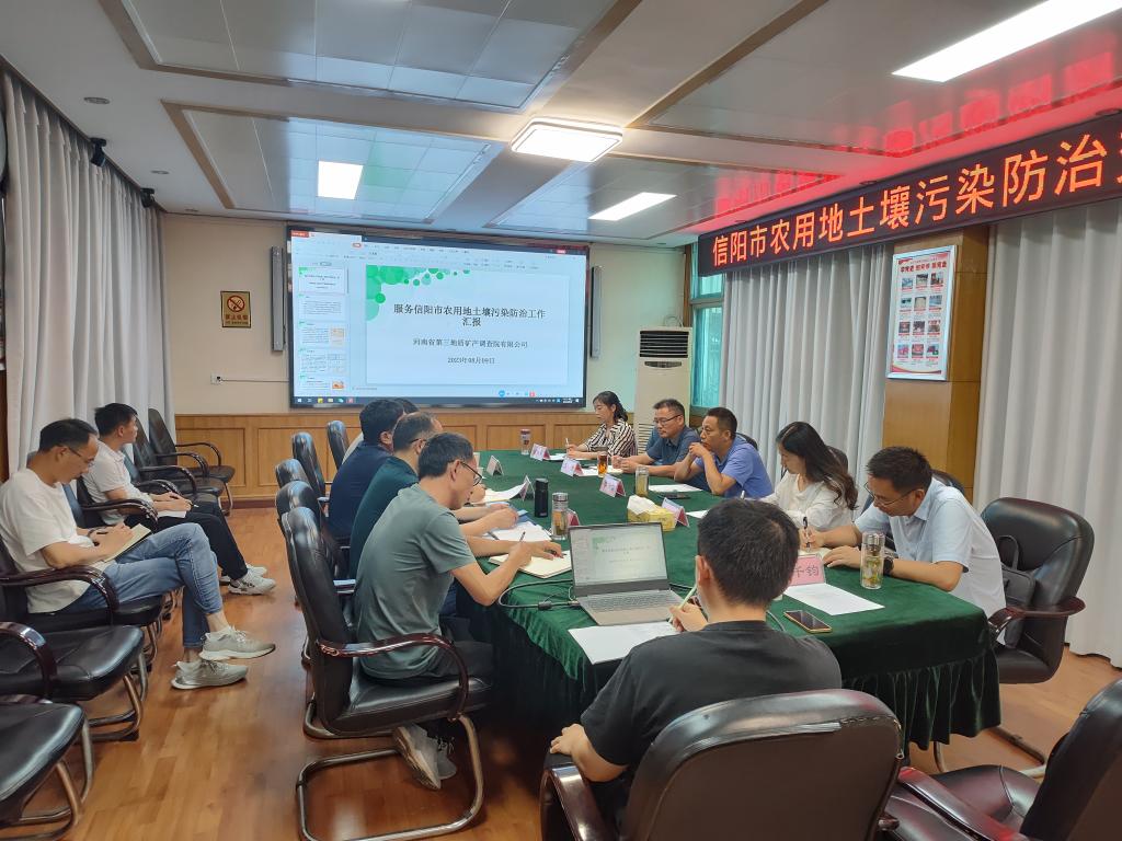 2023年8月9日下午,由河南省第三地质矿产调查院有限公司主办的“信阳市农用地土壤污染防治交流座谈会”举行,信阳市农业生态与资源保护站、新县能源植保种业服务中心相关负责人参加。我院党总支书记李传保,副院长董丽平,刘合满教授应邀参加。
