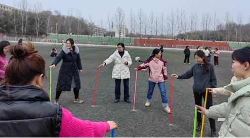 本次活动包括“不倒森林”“平地而起”“珠行万里”“击鼓颠球”“奔跑车轮”和“投掷能手”六个项目,内容丰富多样。我院女教师们积极参与,每个项目协调一致,彼此默契配合,并在这些项目中展现了教职工团结协作、勇往直前的精神,最终荣获一等奖。
