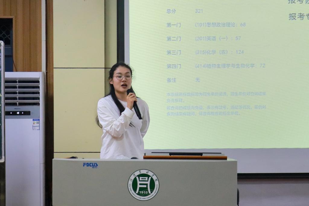 为激发我院学生的考研热情,明确考研目标,掌握相关备考技巧。5月9日晚,我院在二教204教室举办了以“研途启航,助力成长”为主题的考研经验交流会。农学院党总支书记李传保、院长陈利军、院党总支副书记王付娟、团总支书记陈磊以及大三辅导员代表赵筱岑、冯凡、王威老师出席本次活动,13位考研成绩优秀学生为大家分享了考研经验。
