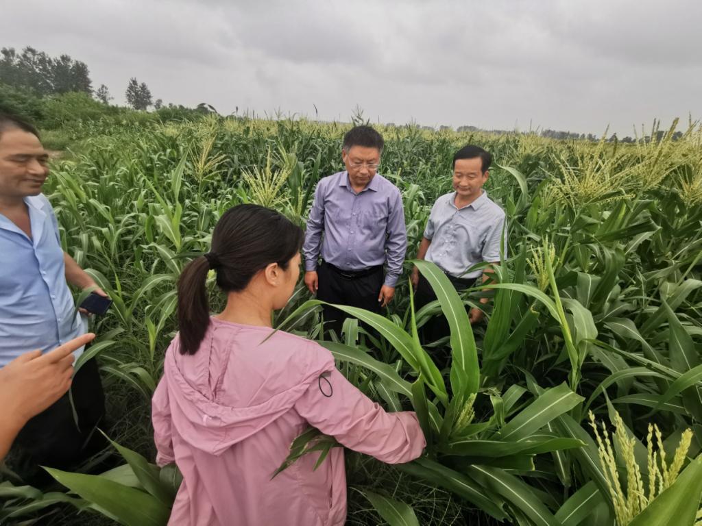 8月19日,教育部作物生长发育调控重点实验室主任、农业农村部玉米专家指导组成员、河南农业大学教授刘天学,信阳市“科技副总”王付娟,河南省科技特派员、农学院教师刘合满、周强、曹永润等一行组成的联合科技服务团前往息县春达玉米有限责任公司,实地考察了公司玉米-大豆带状复合种植基地,查看了甜糯玉米授粉与结实情况,针对今年前期干旱和持续高温导致玉米个体发育差异大,授粉不完全等问题,建议采用无人机田间扰动促进授粉,从而提高玉米授粉和结实率。