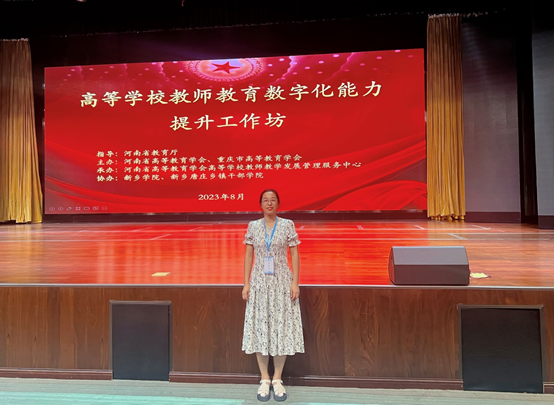 为了全面贯彻我国教育数字化战略,积极引领高等教育迈向数字时代,努力提升教师的数字化素养和教学水平,张莉副教授于2023年8月12日至15日在河南省新乡市参加了河南高等教育学会和重庆市高等教育学会主办的高等学校教师教育数字化能力提升工作坊培训会。