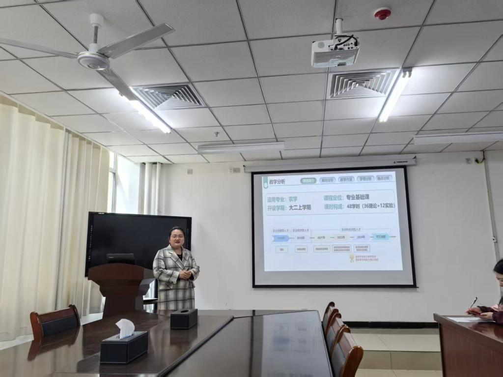 为深入贯彻落实党的二十大精神和全国教育大会精神,落实立德树人根本任务,持续深化教育教学改革,引导教师潜心教书育人,不断激发高校课堂教学创新活力,结合学校《关于举办2025年度beat365在线平台官网教师课堂教学创新大赛的通知》要求,经过各教研室的选拔和推荐,我院于4月3日上午在3A实验楼105举办农学院2025年度教师课堂教学创新大赛,共有8位教师作为选手参与比赛。副院长董丽平、学术副院长刘合满、各教研室主任、学院教学督导组成员参与并作为评委参加了本次竞赛活动。