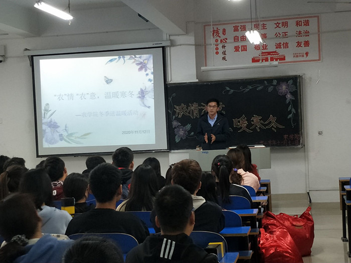 为帮助家庭经济困难学生度过一个温暖的冬天,把学校对困难学生的关心关爱落到实处。11月12日,农学院在一教A204教室开展了 “‘农’情浓意,温暖寒冬”冬季送温暖活动。院党总支副书记王付娟,辅导员陈磊老师及部分学生参加本次活动。