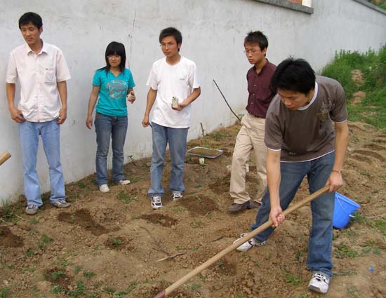 5月10日下午,中药协会会员们参与指导老师尹健副教授“栝楼栽培与害虫防治”科研的移栽栝楼苗工作。