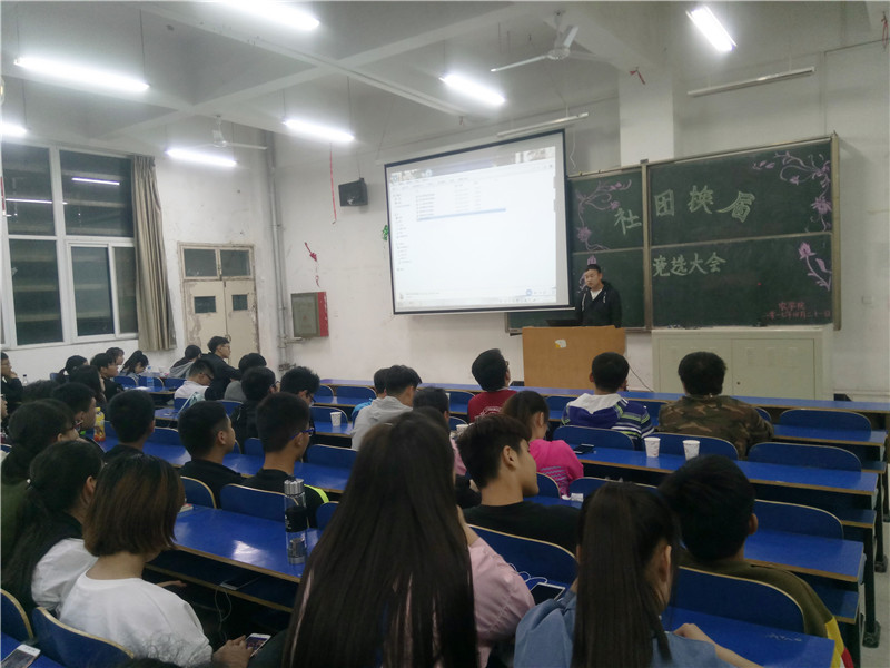 4月21日晚,我院在一教E101举办了“社团换届竞选大会”。参加此次大会有院团总支学生会主席团成员,各社团社长,社团竞选者及16级全体人员。大会由社团部干事卢芬芬、杨金鹏主持。
