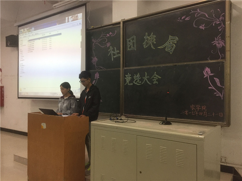 大会开始,两位主持人首先介绍了各个社团的发展史。接着,由花芮玫瑰花社团、昆虫爱好者社团、无土栽培社团、药用植物社团、植物保护社团、植物营养社团、种子社团的竞选者按照顺序依次进行演讲。每个社团的成员进行了简短的演讲,表达了对所在的社团的信心,并表示会在社团活动中不断提高自身能力,期待为社团的发展贡献自己的一份力量。竞选完毕,由院学生会主席李义对此次竞选大会作了总结,鼓励社团多举办活动,期望各社团的发展越来越好。