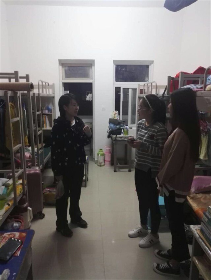 各班班主任到各个学生宿舍,了解同学返校情况,对调整宿舍的同学进行了安抚,对宿舍安全再次进行了强调。并为各班学生开展了暑期收心会,向同学们告知了学校开学季新的规定,介绍了新学期的文明就餐活动,希望同学们对新的学期充满热情,不忘初心,好好学习,充分利用自己的时间,珍惜大学的时光。