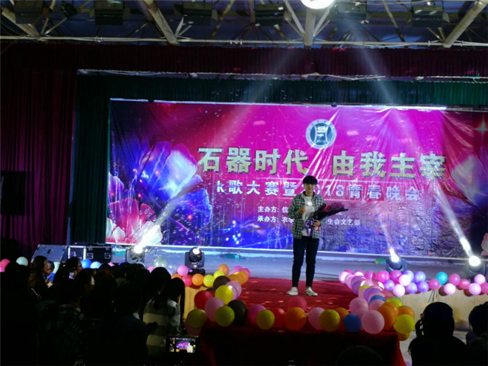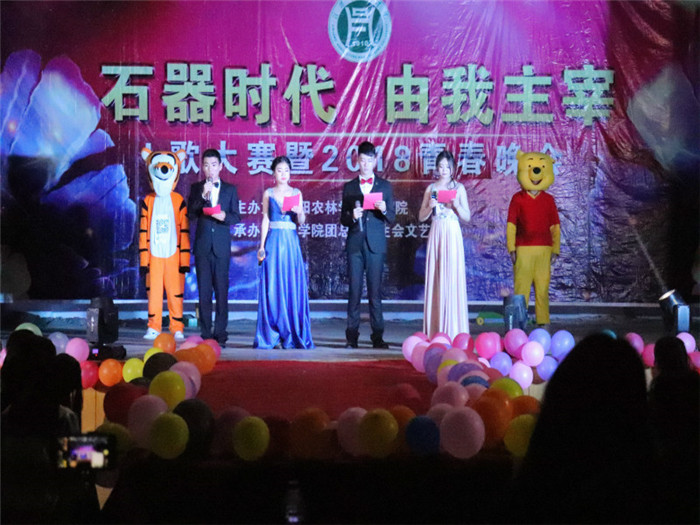 2018年3月30日晚,农学院在大学生活动中心(学校一餐三楼)举办以“石器时代,由我主宰”为主题的K歌大赛暨青春晚会。校团委书记王鹏老师、校团委张苗苗老师、教务处刘陆民老师、外国语学院陆岱宝老师以及我院刘合满、王付娟、金明慧、刘书含等老师出席本次活动。我院与兄弟院系大一学生共同欣赏了本次视听盛宴。