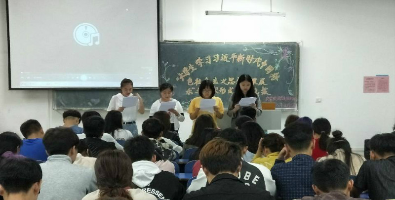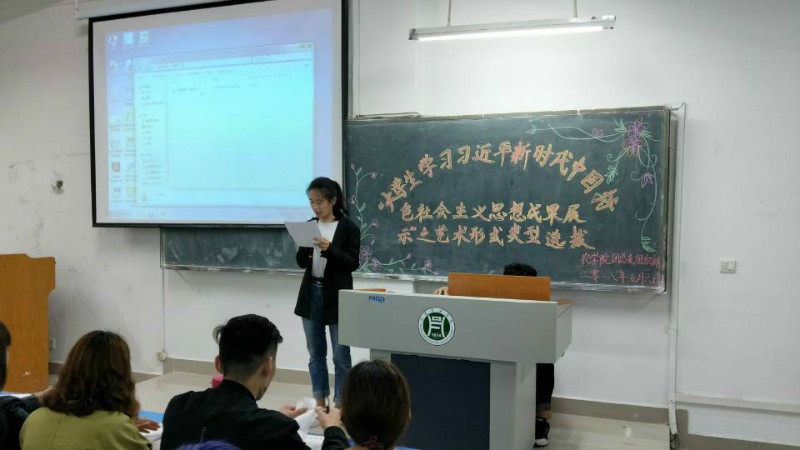 2018年5月6日19:00,我院在一教c104教室举行以演讲为主要形式的“大学生学习习近平新时代中国特色社会主义思想"成果展示艺术形式类型选拔比赛。院文艺部部长李洁、组织部部长魏彬以及全体大一学生参与了此次比赛。