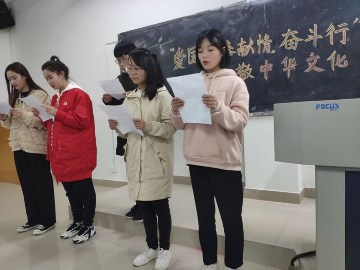 主题朗诵比赛以“爱国心、奉献情,奋斗行”为主题开展,参与的同学通过朗诵经典的爱国诗篇表达爱国情怀。