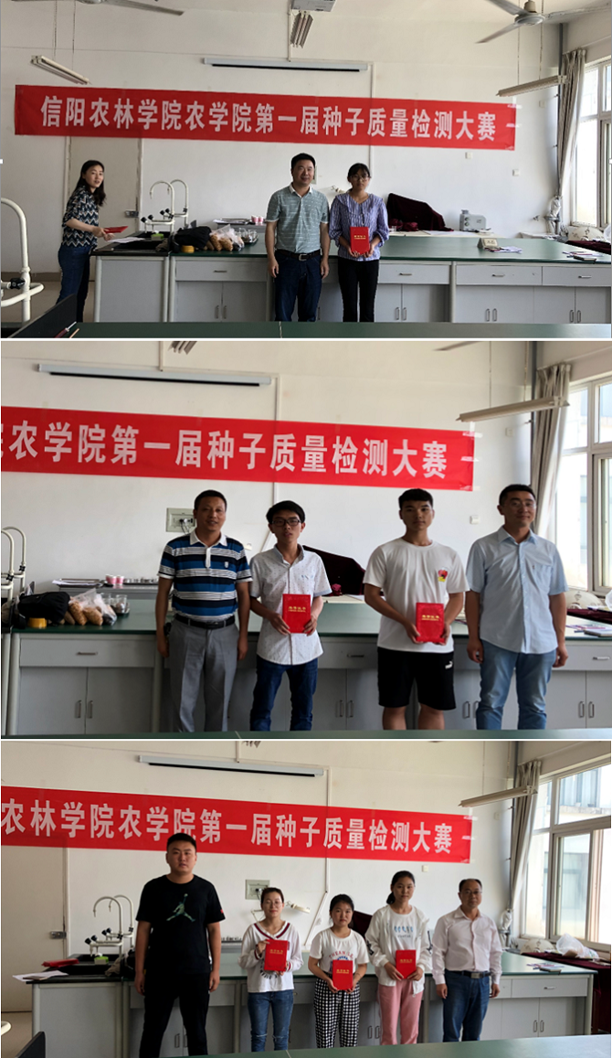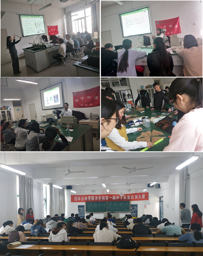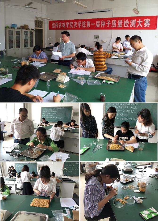 为了提高学生的专业技能,培养学生综合素质,达到以赛促教、以赛促学的目的,5月26日上午,由农学院主办,种子科学与工程专业校级综合改革试点项目组和农学院种子社团承办的第一届种子质量检测大赛决赛在beat365在线平台官网实验楼2A413举办,农学院党总支书记雷振山,副院长李传保出席了本次大赛,大赛还特别邀请了信阳穗源种业有限公司总经理赵子明、江苏中江种业股份有限公司水稻部经理王潮、平桥区五里店乡农业发展中心主任焦文超担任评委。