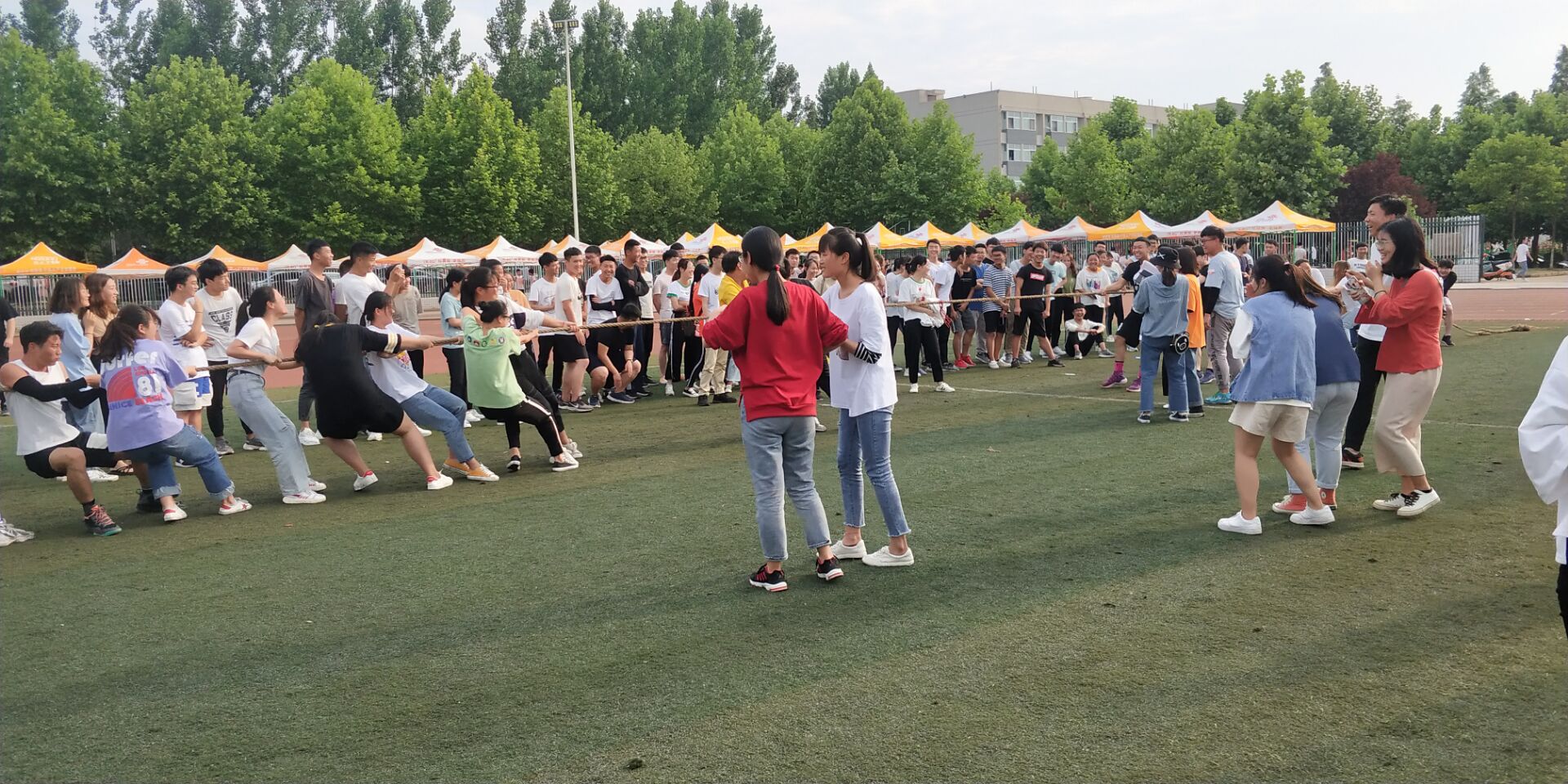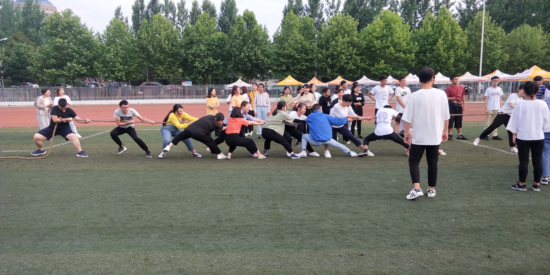 为了加强班级团结,培养阳光健康的心态,展现大学生积极向上的风貌,我院于2019年5月31下午在操场举办拔河比赛,院心理部组织,体育部干事担任裁判,18级学生参加。