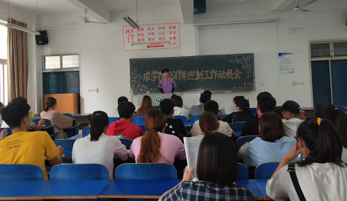 2019年9月4日中午,我院在一教A105召开了2019年迎新工作动员会,学工组刘书含老师、武浩老师和学生会干部、18级各班负责人、新生带班们参加了本次会议。