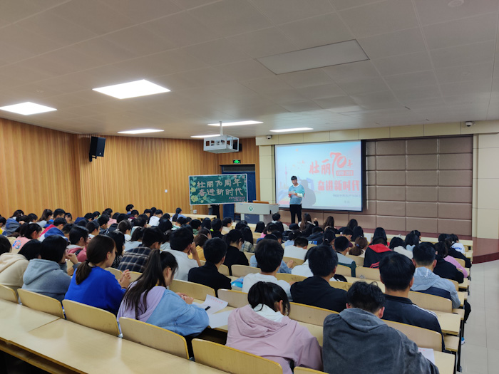 2019年10月18日晚,我院在二教204举办以“壮丽70周年奋进新时代”为主题的演讲比赛。本次演讲由沈一航、司加欣担任主持人,组织部同学担任评委,19级同学参加。