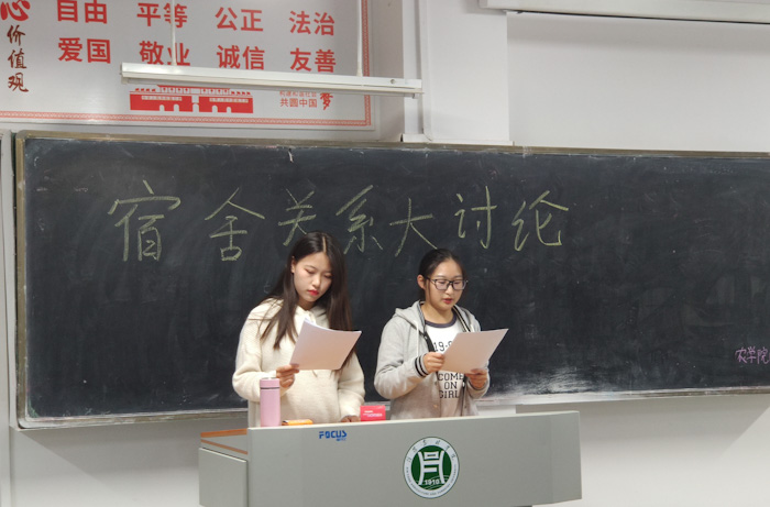 为了更好地促进同学们的宿舍关系,2019年11月13日晚上,我院于一教A205开展了宿舍关系大讨论。本次活动由心理部李俊、陈东芳同学担任主持人,19级同学参与。