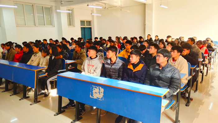 季新老师首先讲述了新乡“先进群体”,让同学们感受到榜样的力量,为同学们列举了以郑永和、梁修昌、范海涛等人为代表的一大批光耀全国、名扬四海的先进典型。然后详细讲述了模范人物张荣锁的事迹,居住在“老爷顶”的村民们需手脚并用才能走出大山且十分危险,村民张荣锁毅然放弃自己红红火火的生意,回村当了村党支部书记并带领村民克服万难修建公路。季老师通过诸多的红色故事为同学们讲述什么是红色基因,如何才能更好的传承红色基因。最后,季老师总结本次活动的重要内容,告诫同学们要守初心、担使命、找差距、抓落实、珍惜时间、努力奋斗。