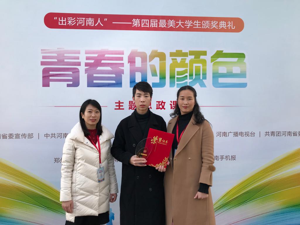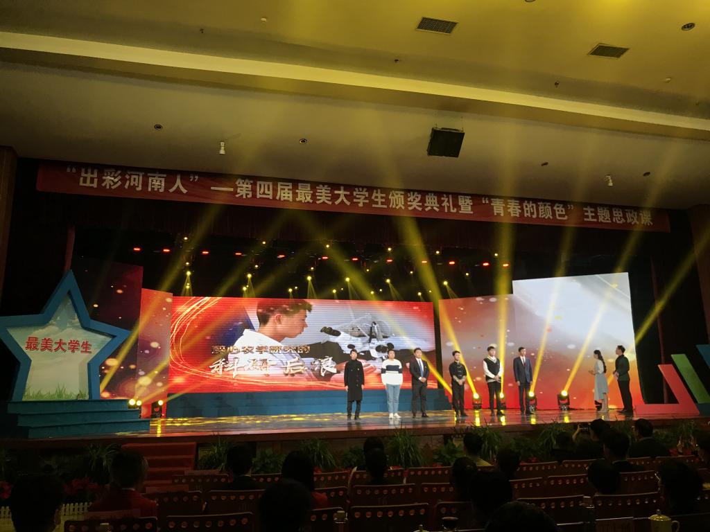 12月17日,“‘出彩河南人’——第四届最美大学生颁奖典礼暨‘青春的颜色’主题思政课”活动在郑州西亚斯学院歌剧院教学剧场举行。我院2017级植物保护专业的林兴雨获得“出彩河南人”第四届最美大学生宣传推介活动优秀奖。