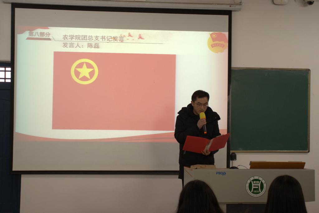 为进一步激发新团员的社会责任感,12月27日中午,我院团总支在二教205举行新团员入团宣誓仪式,院团总支书记陈磊、20名秋季新发展团员和部分老团员代表参加此次活动。