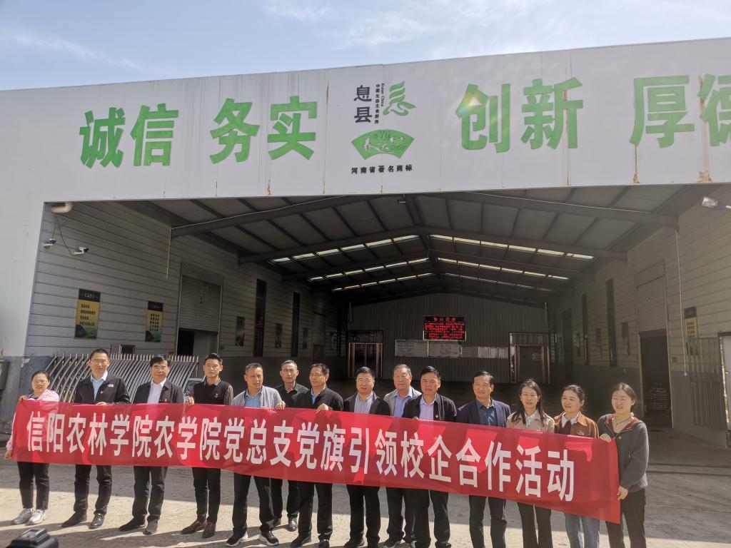 为深入推进党建工作与中心工作的深度融合,以党建为引领促进校企合作。3月30日,农学院党总支与息县春达食品有限责任公司开展“党旗引领”校企合作活动,农学院党总支书记李传保带领学院5名党员参加活动。