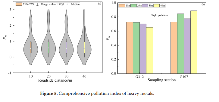 土壤生态系统是全球农业生产力和环境可持续性的根本基础,然而,人类活动已导致陆地环境遭受严重重金属污染,对生态完整性和人类健康构成重大威胁。在农业系统中,重金属积累会破坏土壤结构,且难以修复。土壤中重金属的来源多种多样,其中机动车排放是引起道路周边土壤重金属污染的重要来源之一。本研究通过多指标评价法,对豫南地区G107、G312两条国道沿线稻田土壤中的重金属进行了污染状况及生态风险评估,发现镉、汞、铜和锌超出省级背景值。镉污染最为显著,107国道路测距离40米范围内达到重度污染水平(单因子指数Pi>5),G312国道呈中重度污染(Pi=2-5)。Nemerow指数(PN)表明两国道重金属污染为轻度污染水平(PN=0.70-0.81),其中G107国道污染程度更高。地质累积指数显示:G107和G312国道路测距离40米范围内镉污染程度为轻度-中度,G107国道路测距离20-40米范围内锌达到轻度污染水平。尽管总体生态风险较低,但镉因毒性高(Tr=30)导致其在累积风险中占比超过75%。因此本文揭示了公路交通是河南省南部国道沿线稻田土壤重金属积累的主要来源,会对国道沿线的农业耕作存在潜在食品安全风险,为该地稻田土壤重金属污染防治提供了科学依据。