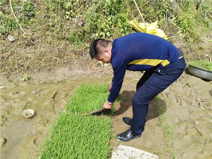 刘秋员老师一行3人在受援单位负责人的带领下,深入到公司生产基地,就水稻直播以及水稻抛栽技术进行了现场指导和操作示范。(农学院)