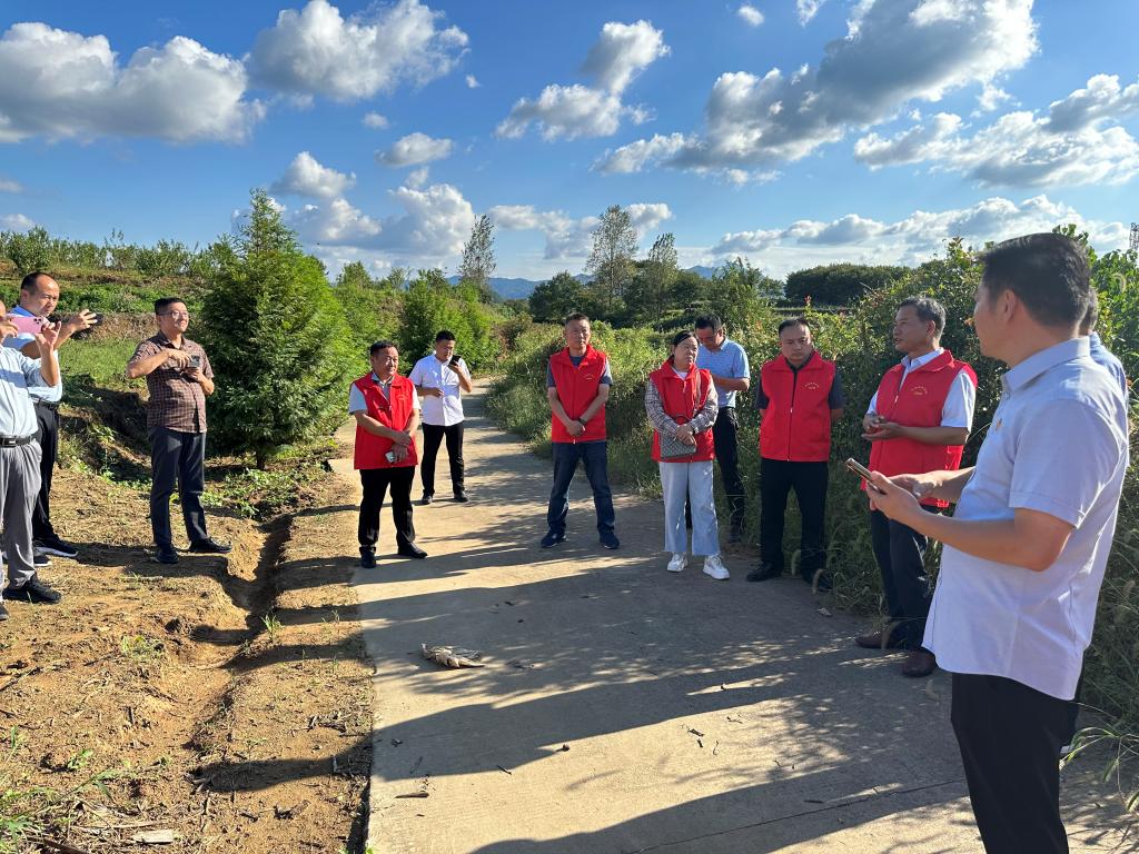 在新县吴陈河镇章墩村,水稻已进入黄熟期,受前期降雨影响,田面较湿,收割机无法下田收割,村民计划10天后收割,鲁伟林研究员建议村民清沟排水,抢天抢时收割,避免后期连阴雨造成穗发芽及倒伏等不可预测情况发生,确保稻谷产量和质量,做到颗粒归仓。