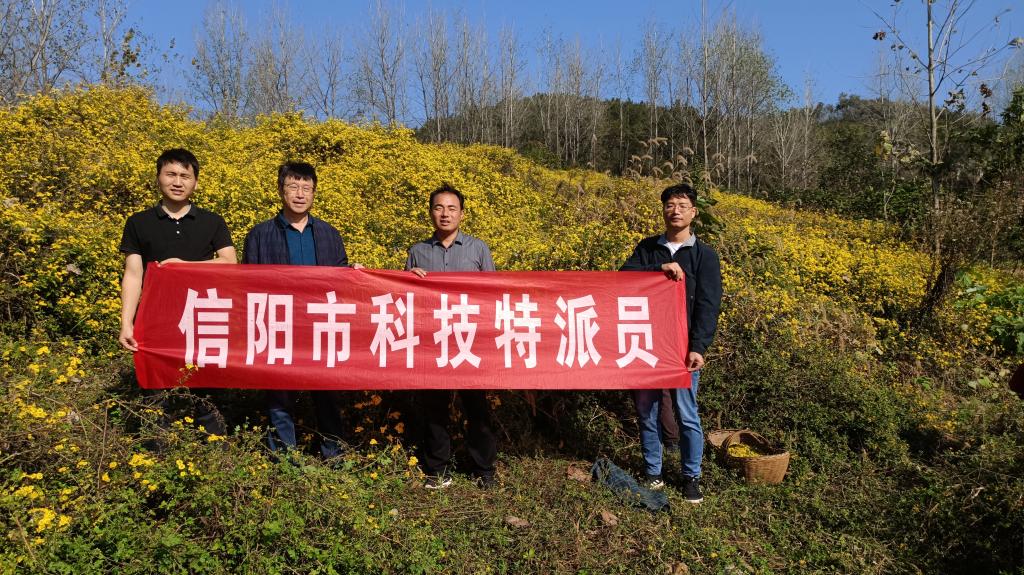 2023年11月1日,信阳市科技特派员、农学院尹健院长带领信阳市科技特派员耿书宝、徐运飞老师赴光山县淮河源林药种植专业合作社进行科技服务。