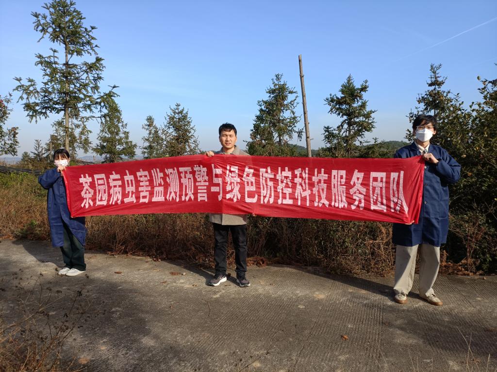 2023年12月8日,我院市科技特派员、茶园病虫害监测预警与绿色防控科技服务团队耿书宝博士带领宋君川等3名学生,前往信阳申林茶叶有限开发公司、罗山县亿峰生态林业开发有限公司开展科技服务工作,调查茶园主要害虫发生情况。