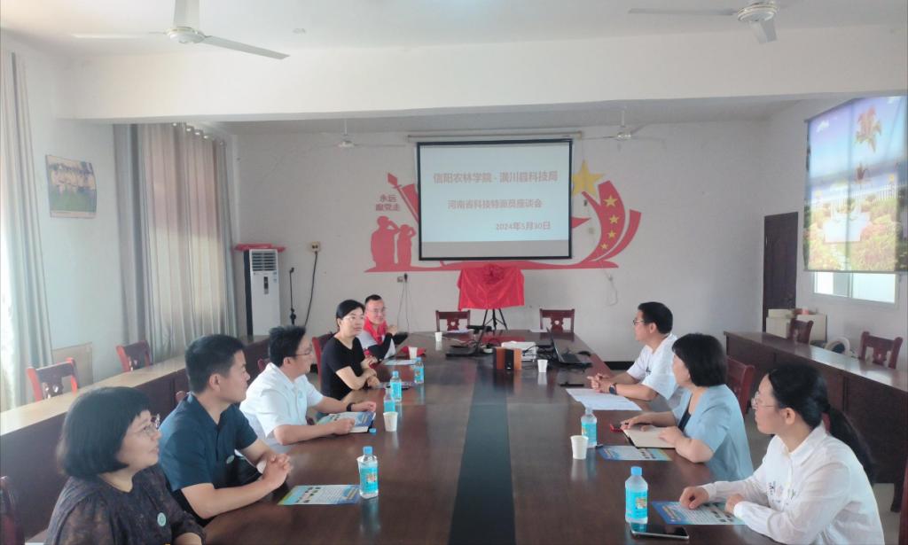 2024年5月30日,我院省科技特派员陈利军、刘红敏、肖荣英、李淑梅和园艺学院龚守富组成的科技特派员服务团,赴潢川县开展科技服务。科技特派员一行首先来到潢川县富兴山农业发展有限公司,与公司负责人进行了座谈交流,潢川县科工信局副局长李兰兰参加座谈。