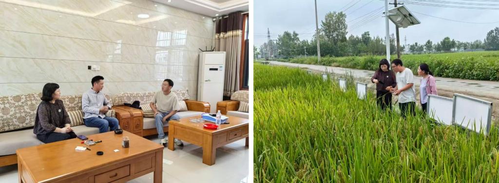在潢川县富兴山农业发展有限公司,科技服务团重点调研了水稻近期病虫害发生和生长状况,刘红敏教授就病虫害绿色综合防控、土壤健康管理等提出了针对性建议。李淑梅副教授则围绕后期收获与仓储等环节与企业技术人员进行了深入交流。
