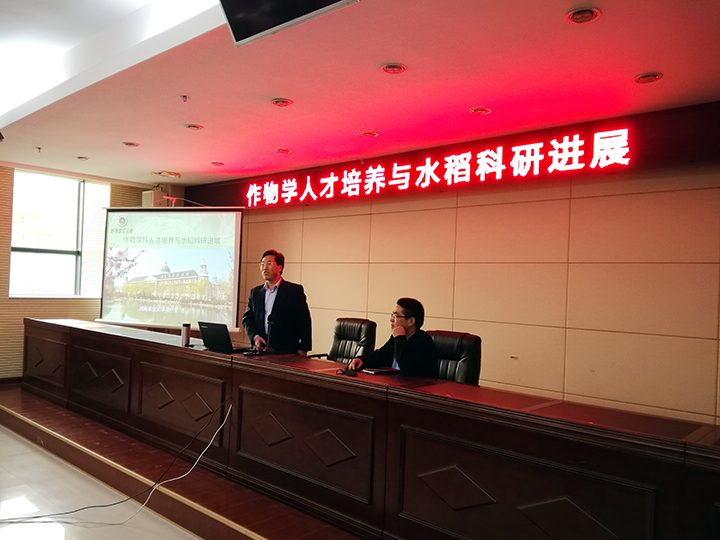 11月4日下午,应农学院邀请,河南农业大学教授、博士生导师赵全志教授莅临beat365在线平台官网,在行政楼一楼会议室为农学院师生作了题为《作物学人才培养与水稻科研进展》的精彩报告。报告由农学院党总支书记胡显淼主持,作物遗传育种教研室、作物栽培教研室教师及种子科学与工程和农学专业学生参加。