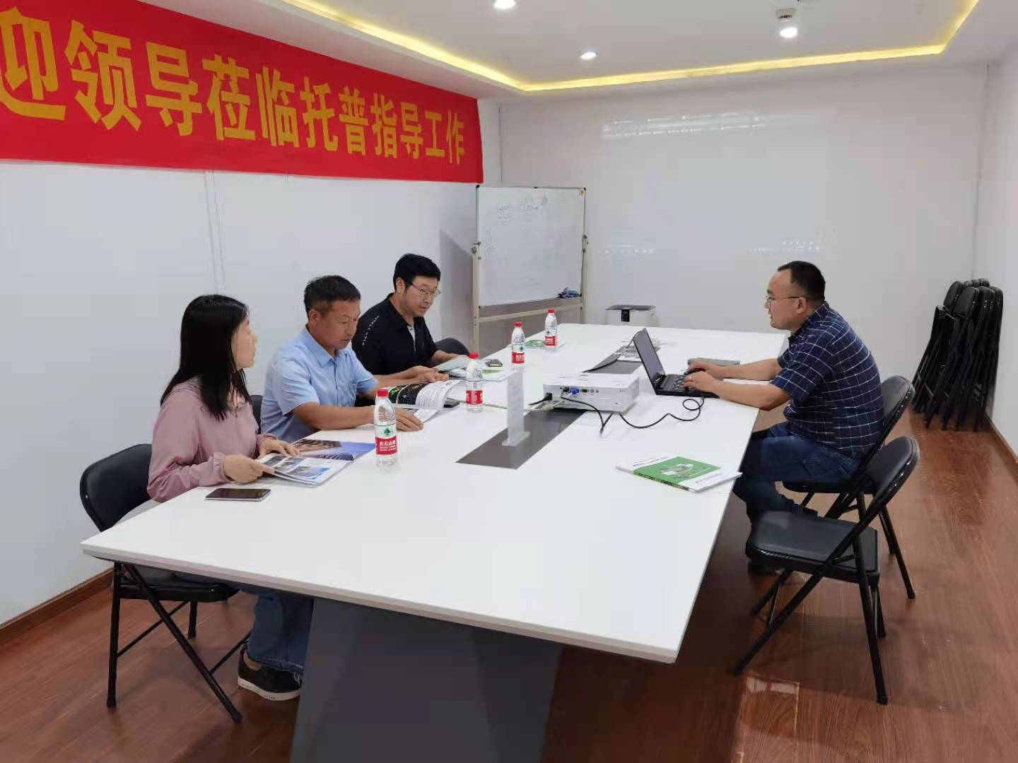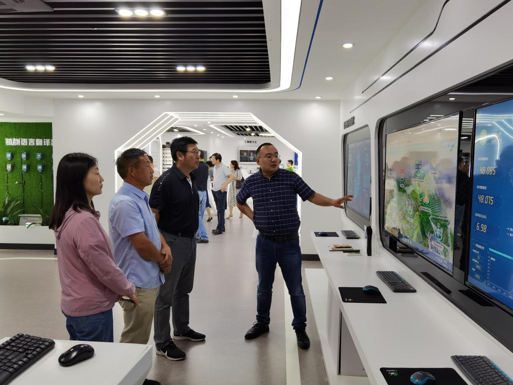 一行听取了公司项目总监周蓝舰对浙江托普云农近年所取得的成就、在研项目、销售产品、技术服务、智慧农业设施研发及建设等方面的详细介绍,并在公司业务经理周文龙的带领下实地考察了公司打造的农业物联网综合服务平台——萧山农科所临浦基地现代农业示范区,详细了解了智慧农业基础设施建设、场地布置、设施运行状态等基本情况。