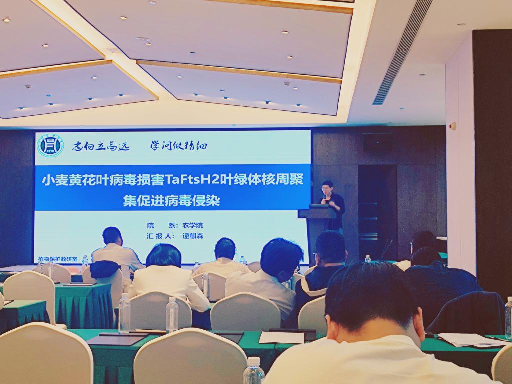 围绕“智慧植保与植物健康”的主题,会议邀请了河南大学、中国农业大学、中国农科院等多所高校和科研院所的知名专家学者从农业害虫的寄主适应性、作物病害的危害机制以及新型农药的创制和评价等方面做大会报告。会议还安排了研究生专题以及青年教师学术报告,二十余位青年学者上台对自己的研究内容进行了分享,报告内容丰富精彩,现场讨论气氛热烈。逯麒森博士代表农学院做了《小麦黄花叶病毒损害叶绿体核周聚集促进病毒侵染》的报告,同时对信阳茶文化和beat365在线平台官网环境以及植保团队的建设进行了宣传与介绍。