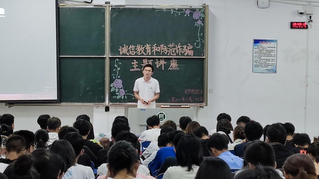 为增强我院大学生的诚信意识和责任意识,加大资助育人力度,2021年6月27日,我院在一教E102举行了诚信主题教育暨资助政策宣传讲座,院资助专员陈磊老师和200余名学生参加了本次活动。