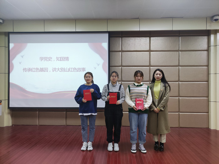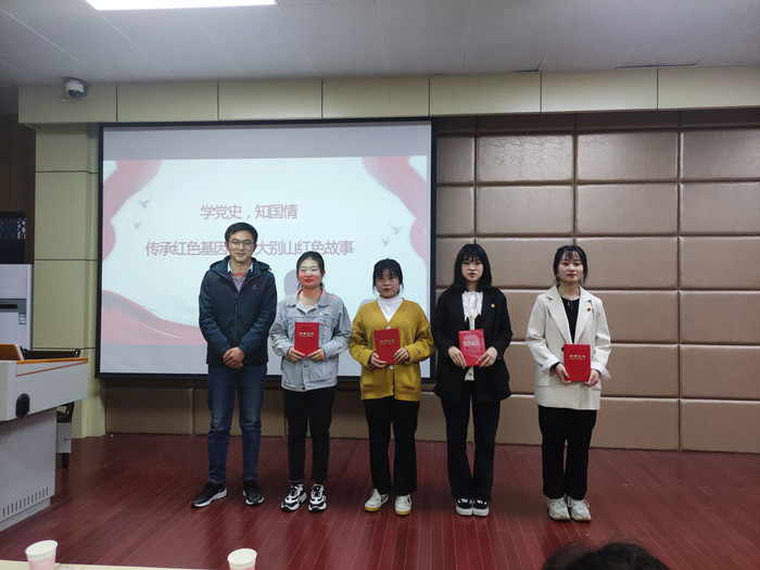 为了深入学习党史,了解大别山红色故事,我院于2021年4月18日在二教204教室举办主题为“学党史,知国情,传承红色基因,讲大别山红色故事”的演讲比赛。我院团总支副书记刘书含,学工组教师陈磊、鲍俊威出席本次活动,学生团总支副书记原玉婷以及学院各班同学积极参与。