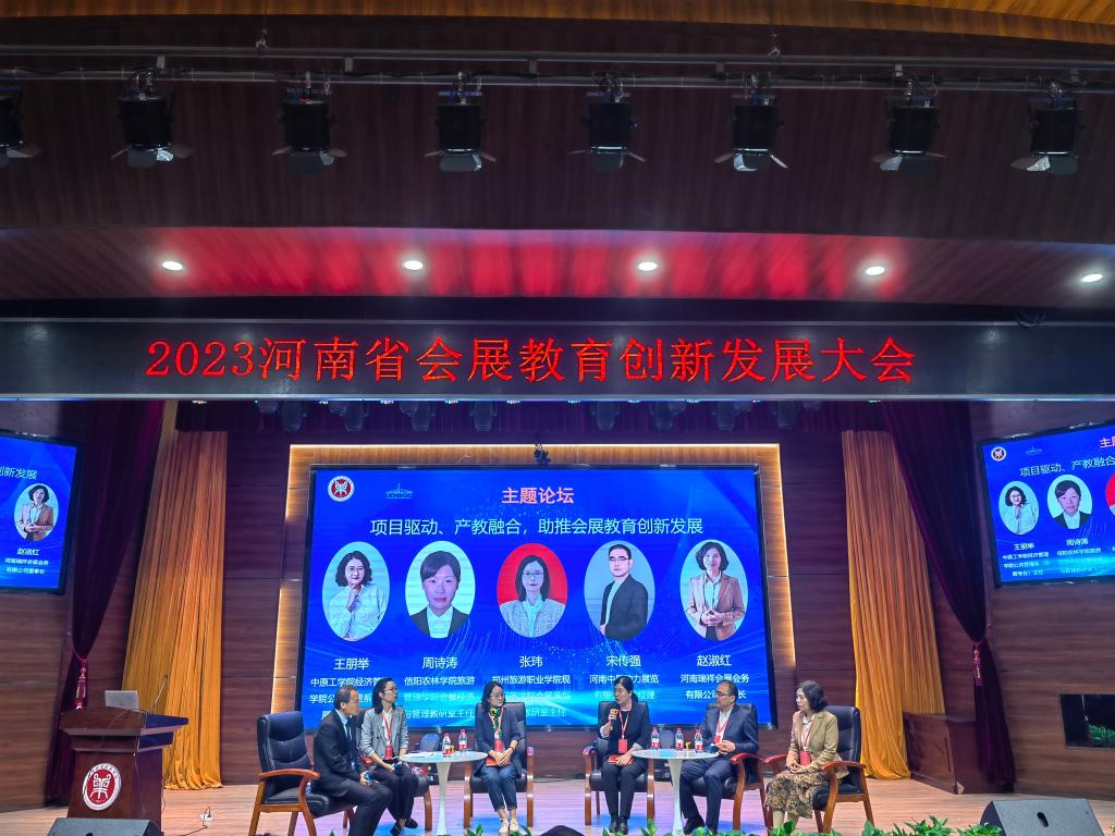 10月12日由河南牧业经济学院与郑州会展行业协会联合主办,河南牧业经济学院旅游学院承办,郑州市会展业促进中心、郑州会展行业协会作为支持单位的2023河南省会展教育创新发展大会在河南牧业经济学院龙子湖校区成功举办。来自河南省内经济主管部门、郑州市会展主管部门、郑州会展行业协会商会、会展企业以及省内主要高校相关领导和负责人等200多人参加本次会议。旅游管理学院会展经济与管理教研室主任周诗涛、副主任张音音以及专任教师胡启蕊参加此次会议。